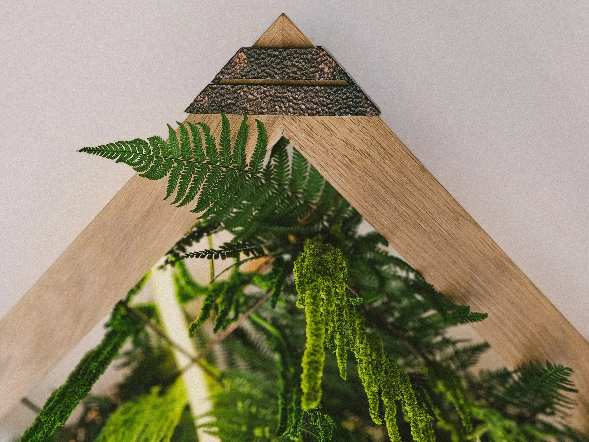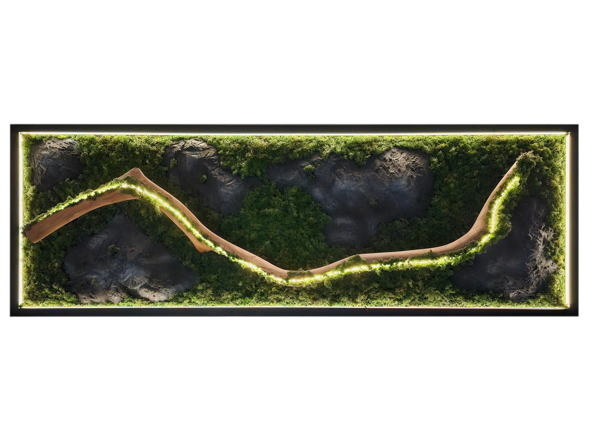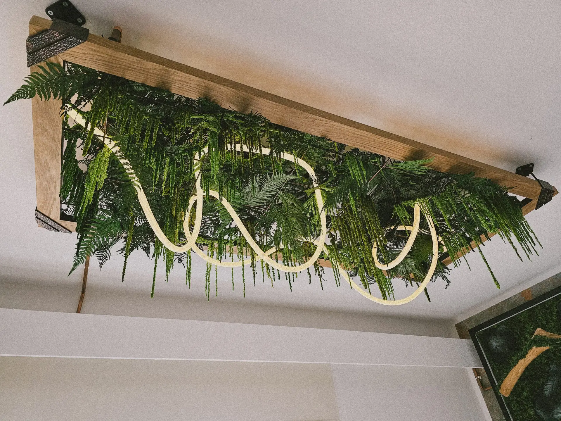 Ziel ist es, einen Ort der Ruhe zu schaffen – nicht draußen, sondern dort, wo wir täglich leben und arbeiten. Daraus entstanden unsere Wand- und Deckenpaneele aus hochwertigem Holz, konserviertem Moos und Farn. Ergänzt durch eine moderne, per Smartphone steuerbare LED-Beleuchtung verbinden sie natürliche Materialien mit zeitgemäßer Technologie.